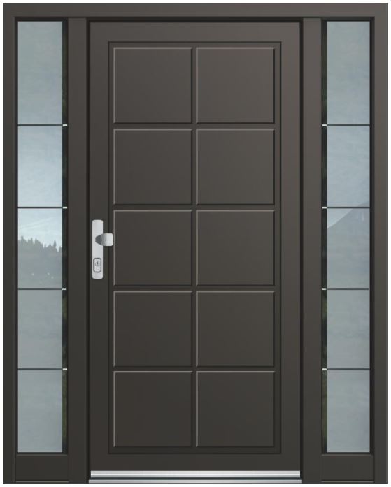 + 2-Scheiben-Wärmeschutzglas in den Paneelen (1,1 W/m2K), 3-Scheiben- Wärmeschutzglas in den Seitenlichtern (0,7 W/m2K) und den Modellen mit kompletter Füllung aus Glas (0,5 W/m2K)